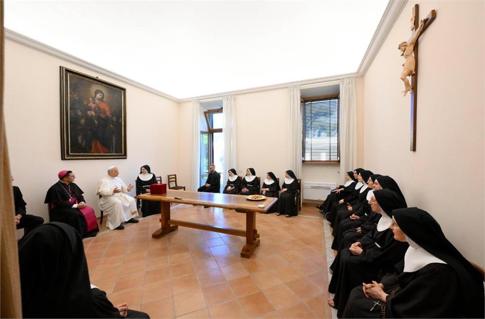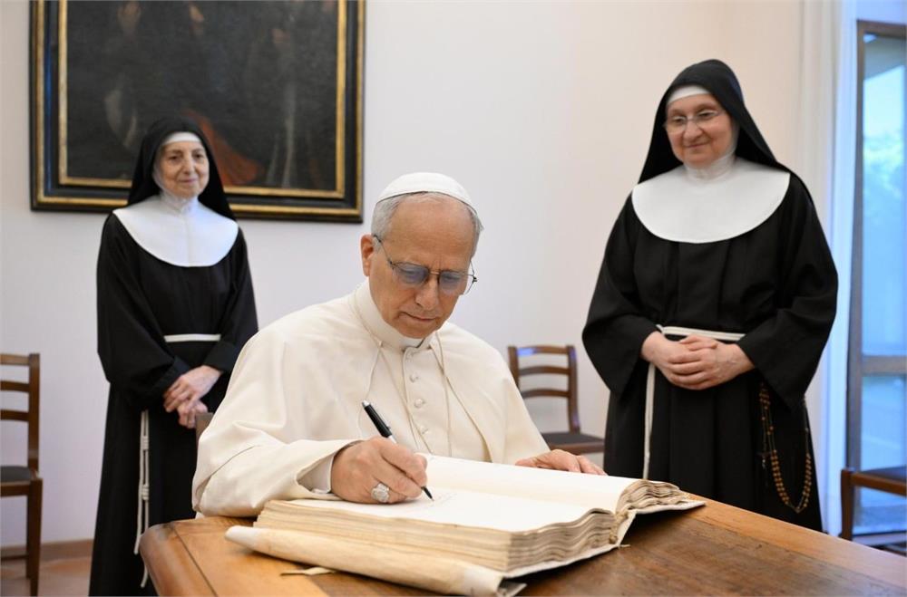 He was welcomed by Mother Maria Donata Reboldi, originally from Brescia, abbess since 2023 and a Poor Clare nun for thirty-five years. Pope Leo XIV spent time in conversation with the sisters, accompanied by H.E. Mons. Vincenzo Viva, Bishop of Albano, his personal secretary, and the chaplain of the community. Also present were Fr. Edgard Iván Rimaycuna Inga, the Pope’s secretary, and Mons. Leonardo Sapienza. The Pope listened attentively to their stories and witness. But above all, he asked them to pray for the Church and for his ministry as Bishop of Rome.