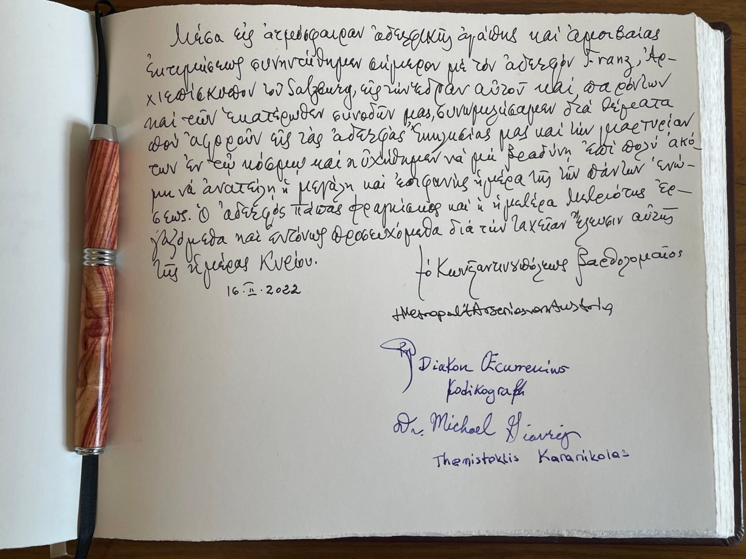 Il Patriarca di Costantinopoli Bartolomeo I (Dimitrios Archontonis) si trova in Austria per trascorrere alcuni giorni di vacanza. Nella giornata del 16 febbraio 2022 ha fatto visita all'arcivescovo di Salisburgo, Sua Eccellenza Rev.ma Monsignor Franz Lackner. L'arcivescovo di Salisburgo storicamente veste il ruolo di primate di Germania.