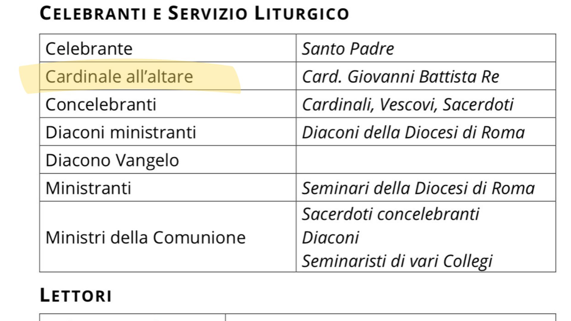 Il Cardinale Giovanni Battista Re, peraltro, ha riscoperto un nuovo ruolo nella liturgia. Anche questo è una di quelle novità da rito delle esequie del Papa Emerito. Creato ad hoc. Si tratta del “Cardinale all’altare”.