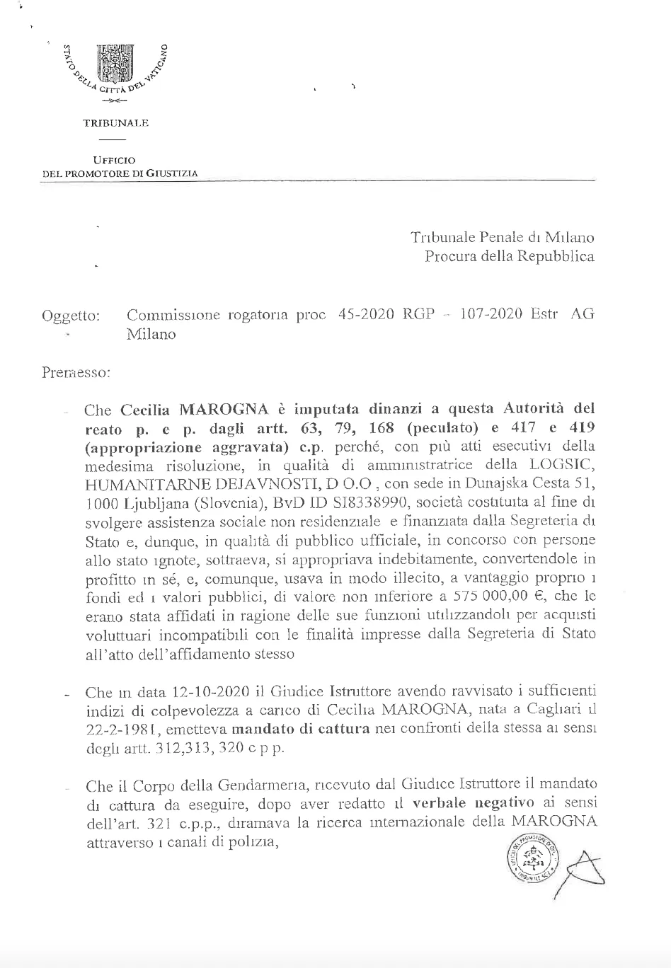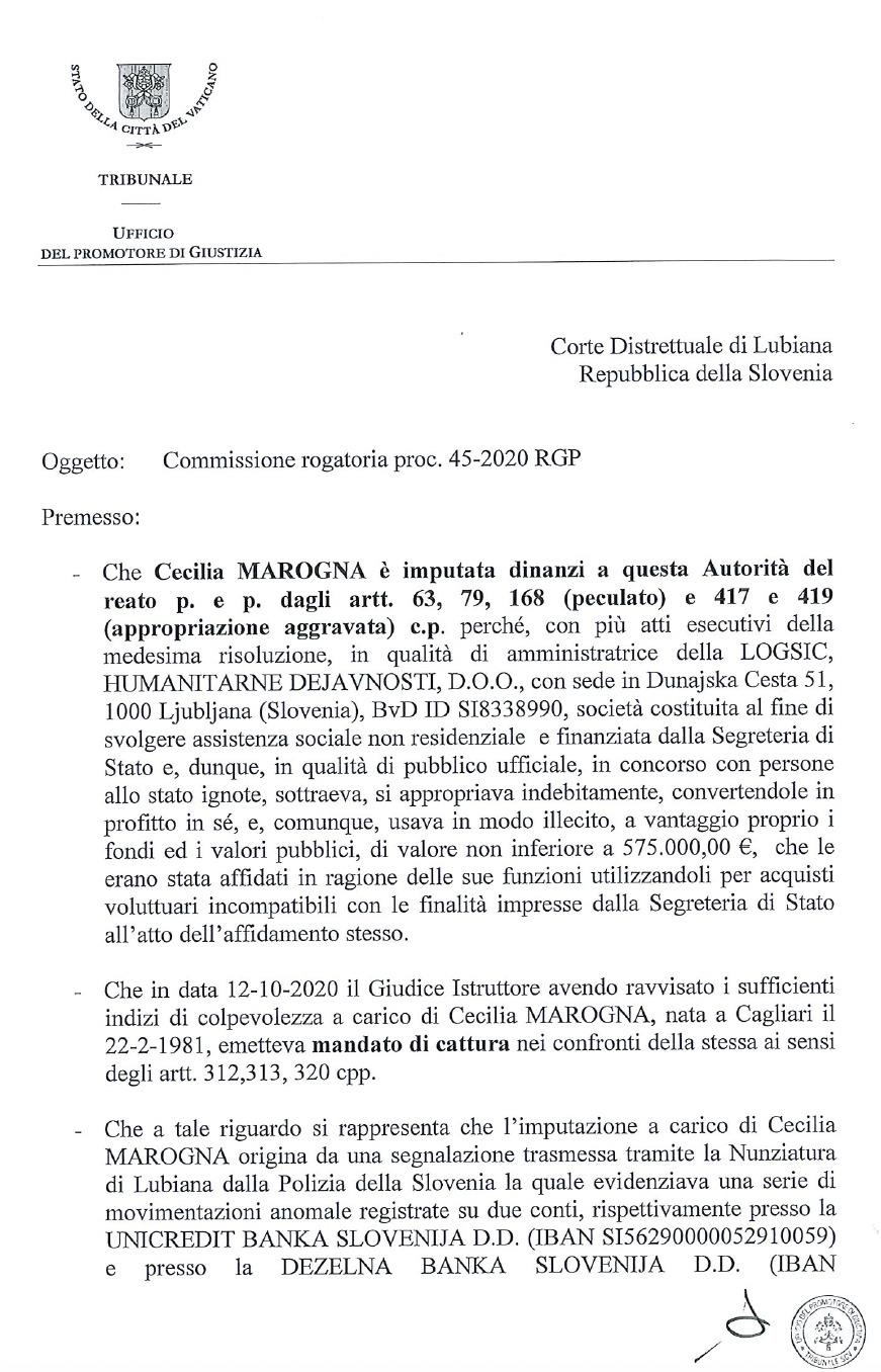 Pertanto, quanto afferma la giornalista è falso. Come si evince dalla memoria pubblicata in esclusiva da Silere non possum in questo articolo, l'ufficio del promotore di giustizia ha inviato una richiesta di cooperazione internazionale per comprendere la natura dei rapporti intrattenuti fra la Segreteria di Stato e la società Inkerman Training Limited. Cosa centra la Marogna?