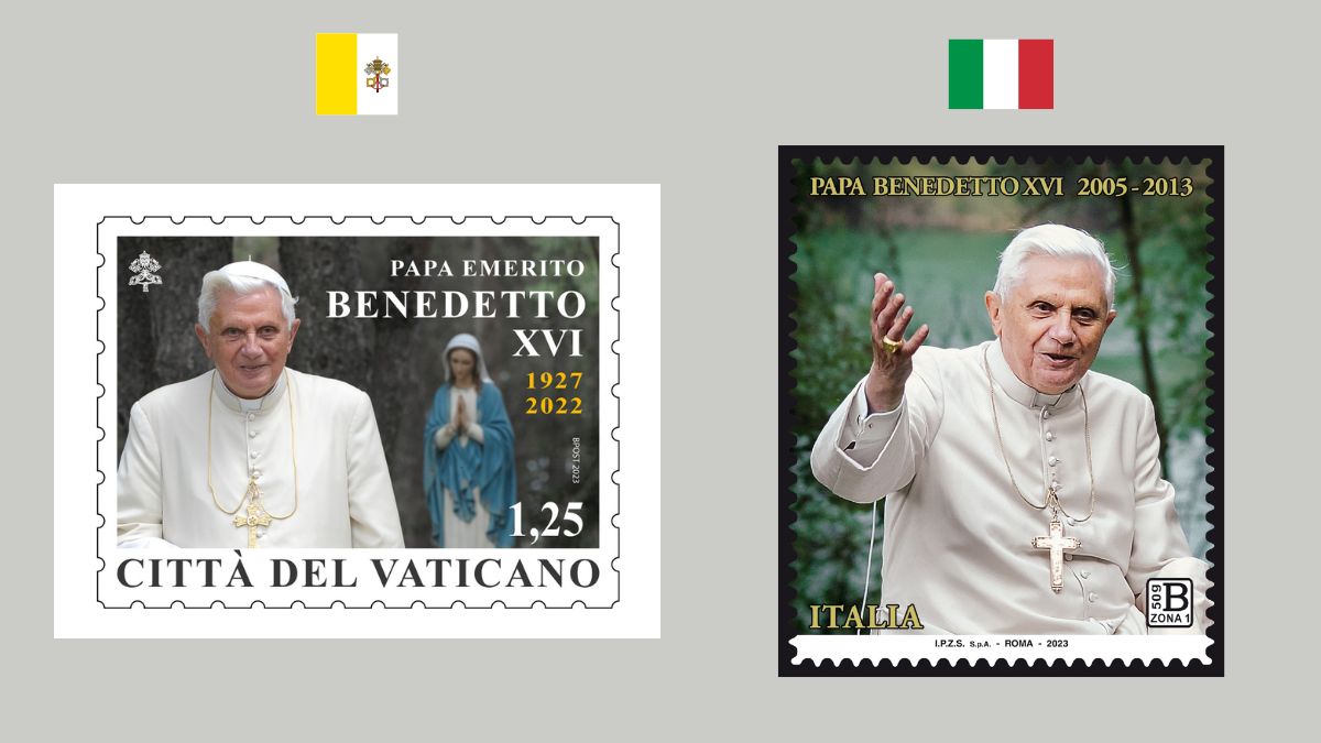 Oggi, 16 maggio 2023, negli uffici postali dedicati della Repubblica Italiana, sarà possibile acquistare il francobollo commemorativo del pontificato di Sua Santità Benedetto XVI.