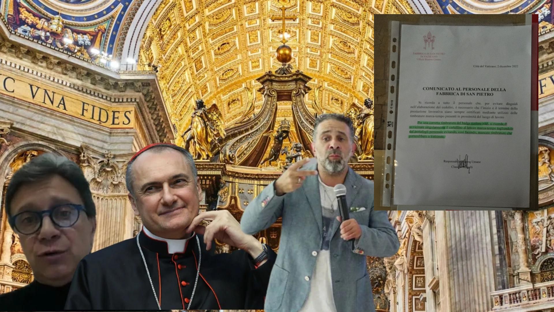 Al termine della visita dei Revisori, per i dipendenti della Basilica è arrivato il momento del comunicato. Ogni tanto Claudio Vezzelli trasforma la Fabbrica di San Pietro nella Casa del Grande Fratello e, prendendo il ruolo di Alessia Marcuzzi, affigge comunicati per i dipendenti.